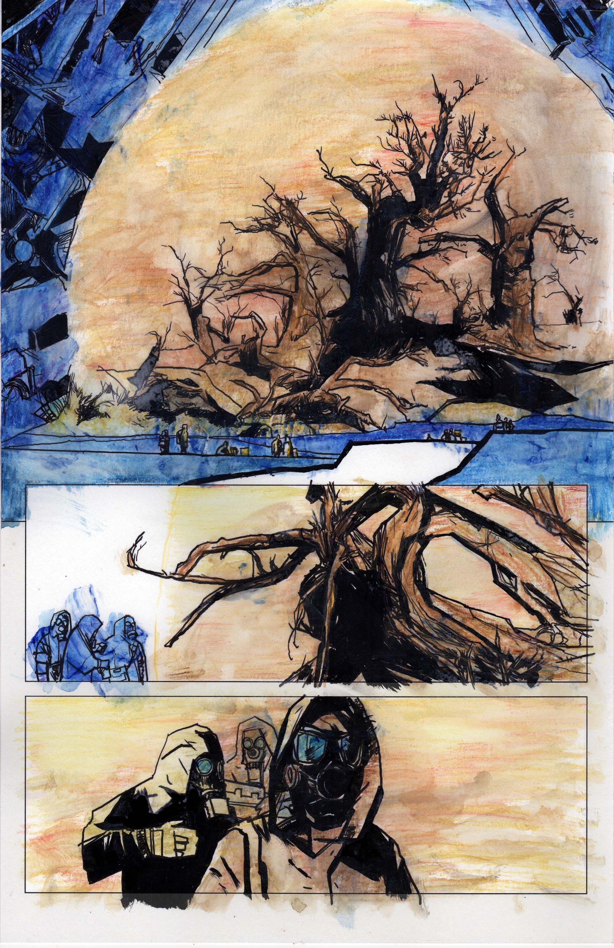 Page 9 from the relentless, doom laden, sci-fi horror comic that was also my first published color work. I had oil bar chunks of color under my fingernails for weeks and it was a fucking blast.